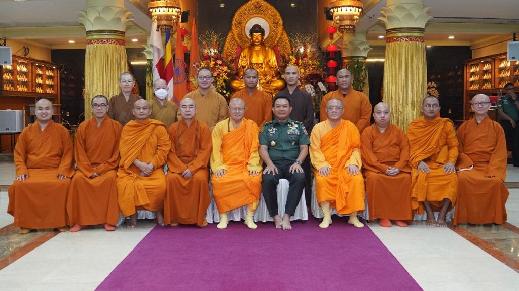 Pernyataan tersebut disampaikan Kepala Staf Angkatan Darat (Kasad) Jenderal TNI Dudung Abdurachman, S.E., M.M., saat melaksanakan audiensi dengan Kepala Vihara Ekayana Arama Bhiksu Aryamaitri Mahastavhira dan Ketua Yayasan Triyanavardhana Indonesia Bhiksu Dharmavimala Mahastavhira, di Vihara Ekayana Arama, Jakarta Barat, Kamis (2/6/2022).